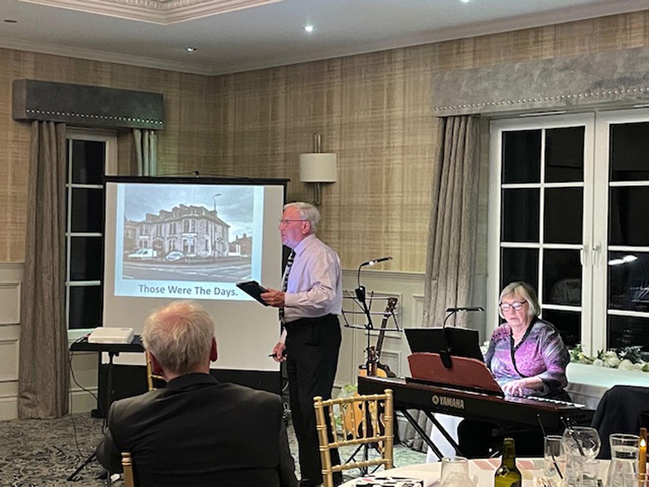 Sheila and Tom entertained us with some great songs, which were accompanied by some funny old photos. A few gasps of "Oh No!" and "I don't remember doing that!" were heard as we recalled the many parties attended over the years.