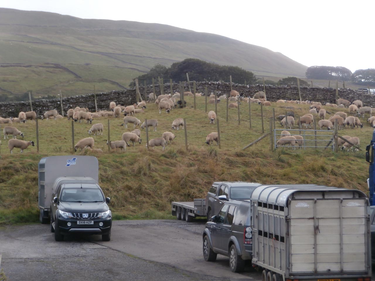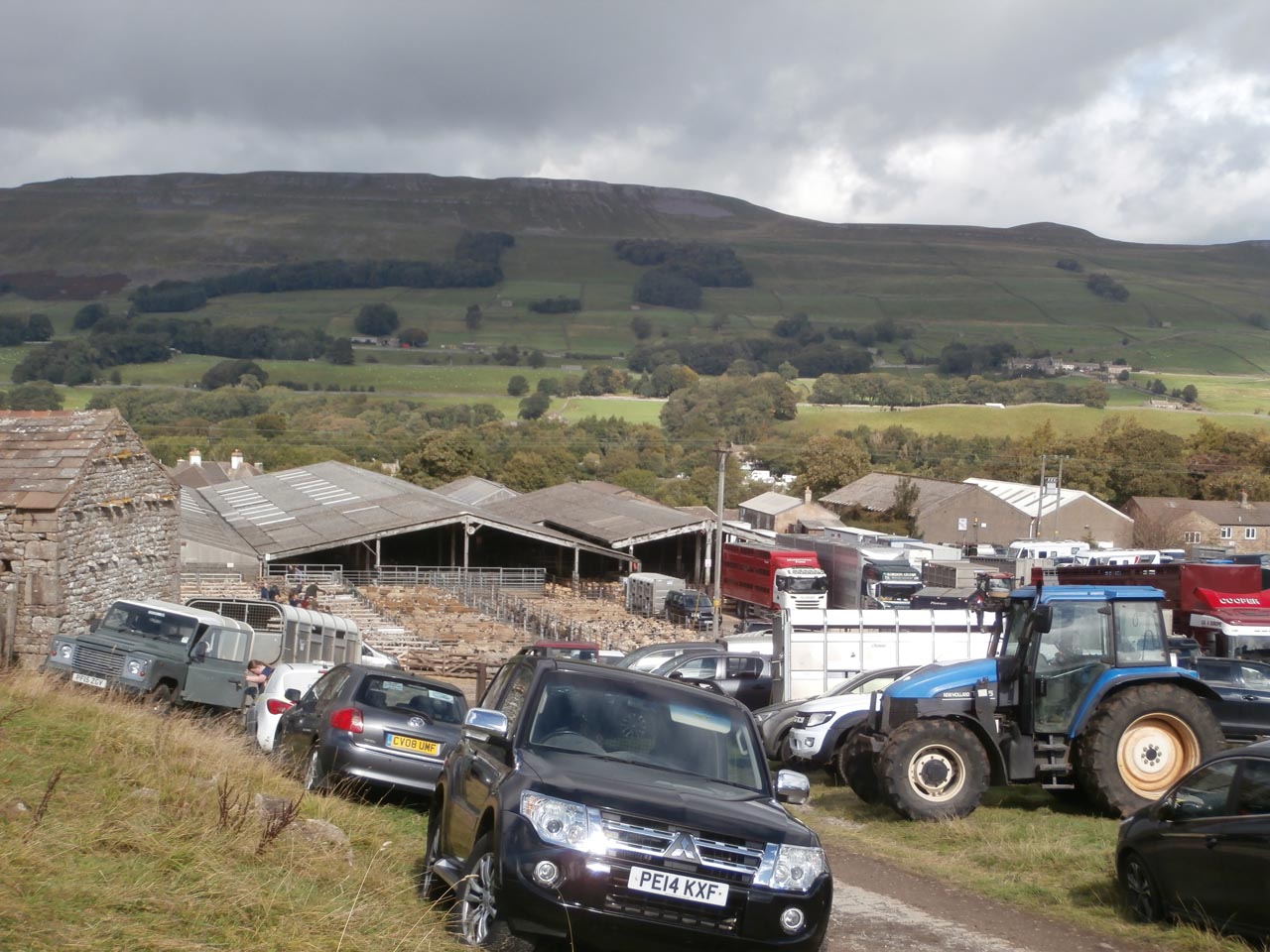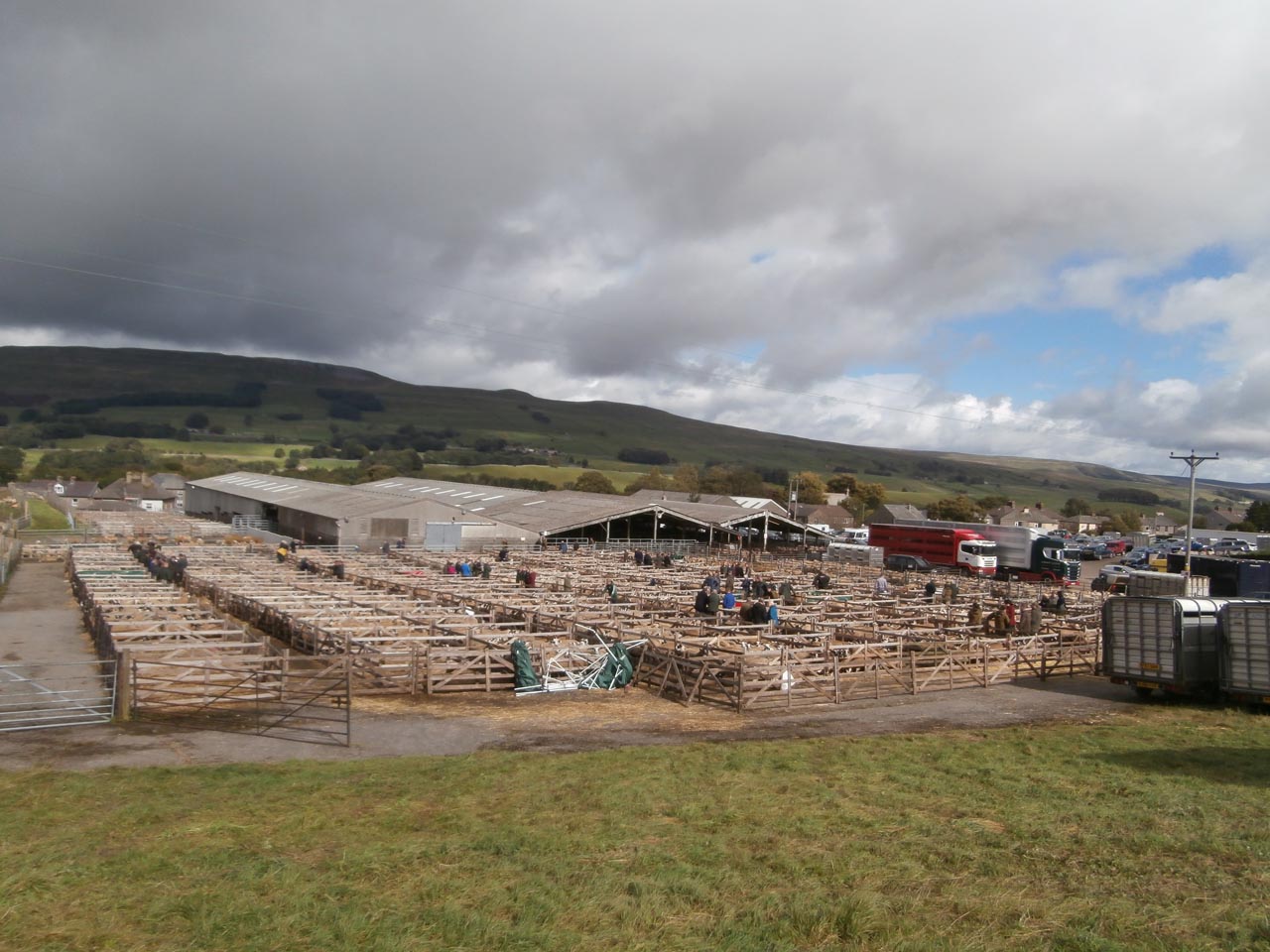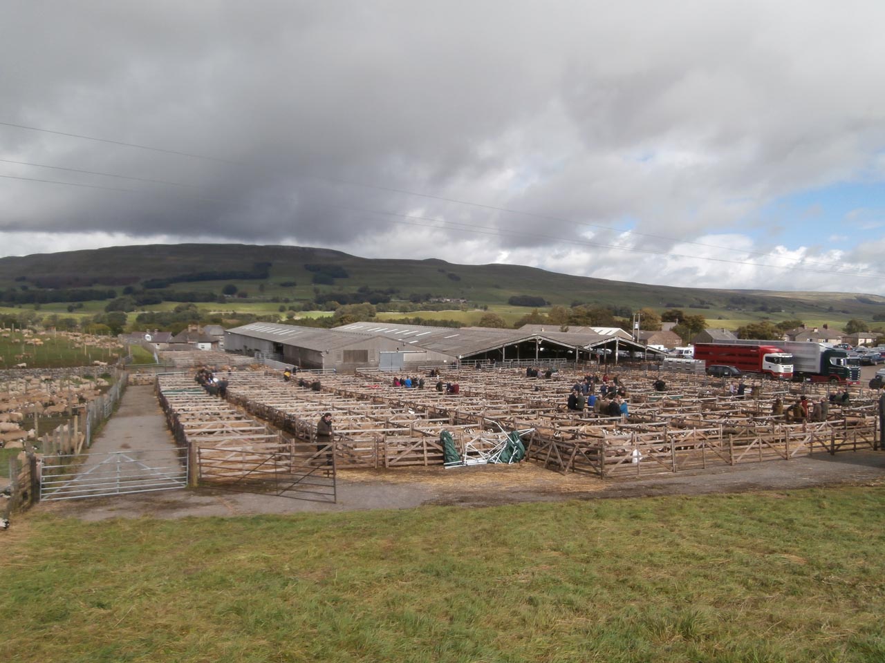 The drive to Hawes takes you through parts of the Lune Valley with lush green meadows either side of the river Lune, the land gently rising on either side where cattle abound. At one point you pass under overhead lines that carry cable cars transporting wood from the surrounding hills to a timber yard. After passing through scenic towns and villages the ground starts to rise as you get to Ingleton, from there on the landscape starts to change. It starts to get steeper either side, rocks jut out of the ground, and a former quarry drops away on one side. Driving on, there's not as much scree showing as there was ten years ago on the steeper higher ground as sheep numbers have dropped (from Ingleton to Hawes livestock is nearly all sheep on the hills with a few cattle). You are climbing as you drive through Chapel le Dale to Ribblehead, the ground levels onto moorland, either side gently rising as you pass through valleys, one containing a well-known viaduct on the Settle to Carlisle railway. At one point a sign welcomes you to Richmondshire. Farmsteads and properties are scattered, with some land on the surrounding hills now taken for forestry. Eventually the road starts to drop and the ground closes in. It stops raining as I drive into Hawes, I manage to park in the market and see a few ewe lambs sold, before a welcome large portion of fish, chips, peas, bread and butter, with a cup of tea for the princely sum of £10 in the market cafe. I stayed to see a lot of sheep sold, talked to an auctioneer and friends from home, to get a feel of the trade, which was still quite buoyant despite the lack of rain in the summer. I spoke to a (mainly cattle) farmer from further west, who had just taken his fourth cut of silage, 'plenty of rain up this way' he said.